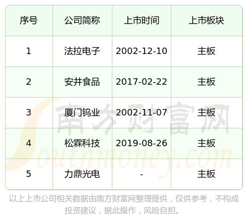 市值上,廈門海滄區(qū)主板上市公司市值排名情況:廈門鎢業(yè)660.28億、安井食品273.96億、法拉電子229.46億、松霖科技157.53億、力鼎光電118.56億。