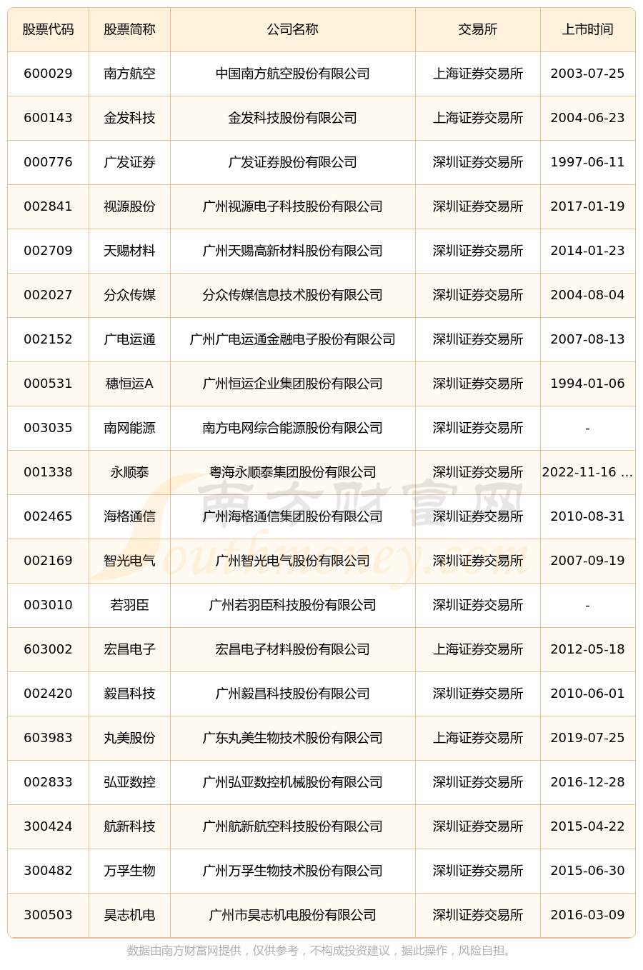 南方財富網(wǎng)趨勢選股系統(tǒng)為您整理了廣州黃埔區(qū)在A股上市的公司。