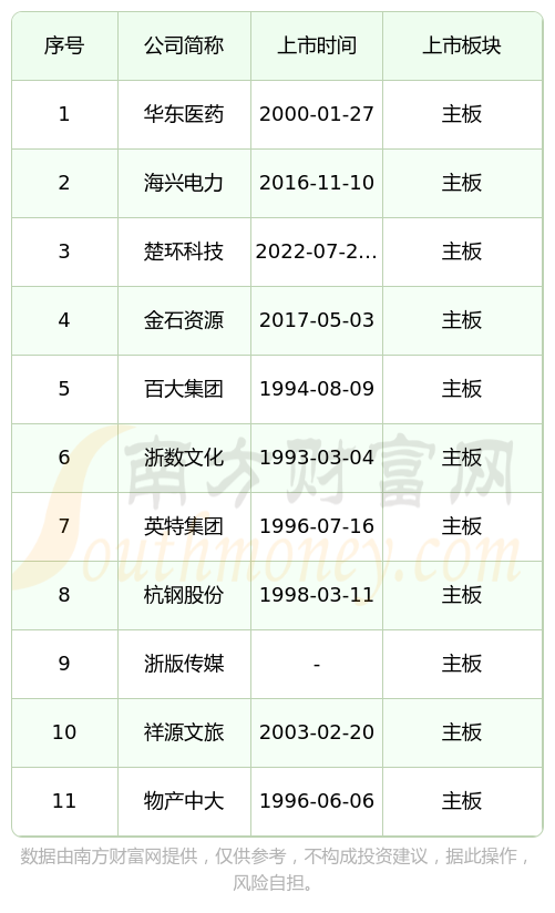 從市值方面來看,杭州拱墅區(qū)主板上市公司市值排名依次為:華東醫(yī)藥(702.31億)、物產(chǎn)中大(281.83億)、杭鋼股份(263.08億)、浙版?zhèn)髅?172.89億)、海興電力(166.4億)、浙數(shù)文化(158.26億)、金石資源(152.34億)、英特集團(62.52億)、祥源文旅(60.21億)、百大集團(59.52億)。
