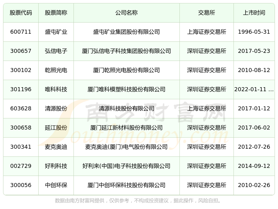 截至12月17日,廈門翔安區(qū)共有9家上市公司,南方財富網(wǎng)趨勢選股系統(tǒng)為您整理了廈門翔安區(qū)在A股上市的公司。