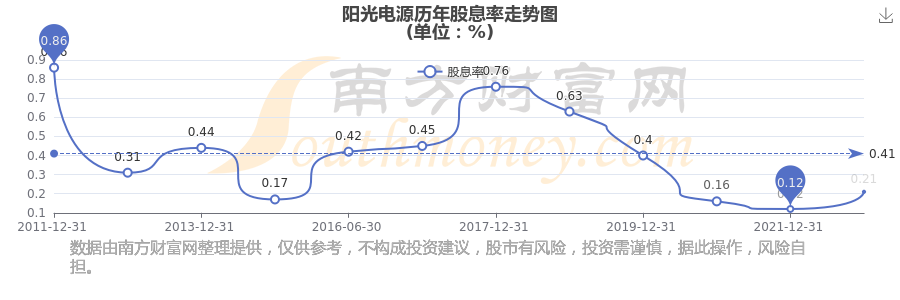 陽(yáng)光電源歷年股息率走勢(shì)如下圖: