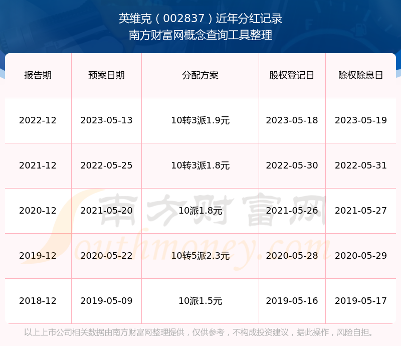 英維克最新一次公布的分紅方案:10轉3派1.9元。