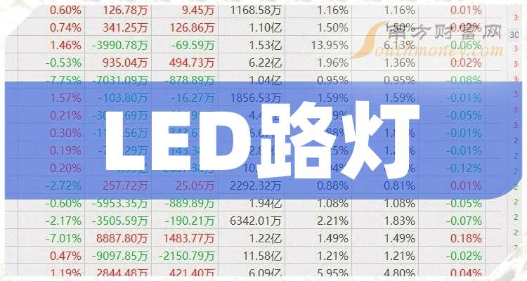 據(jù)南方財富網(wǎng)概念庫數(shù)據(jù)顯示,LED路燈概念上市公司有: