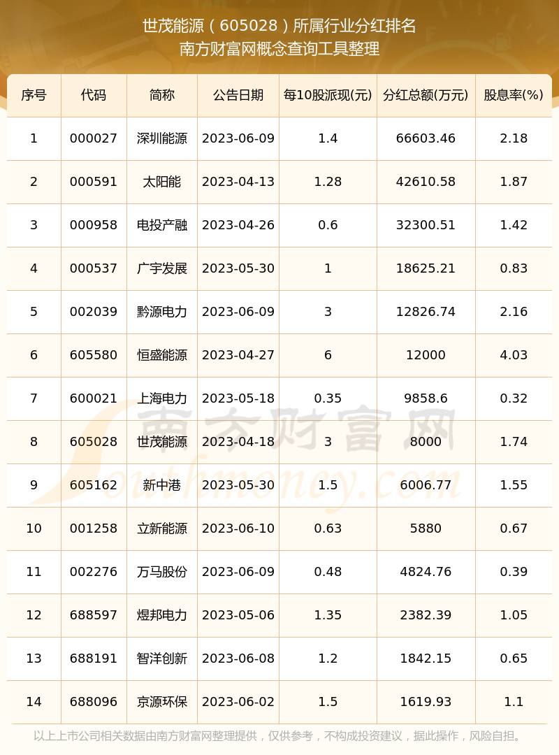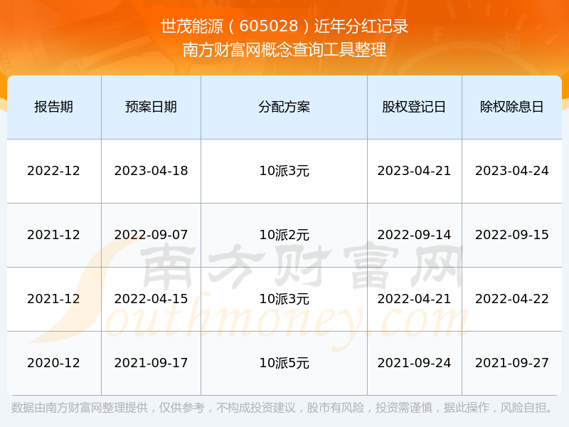 二、世茂能源605028行業(yè)分紅排名