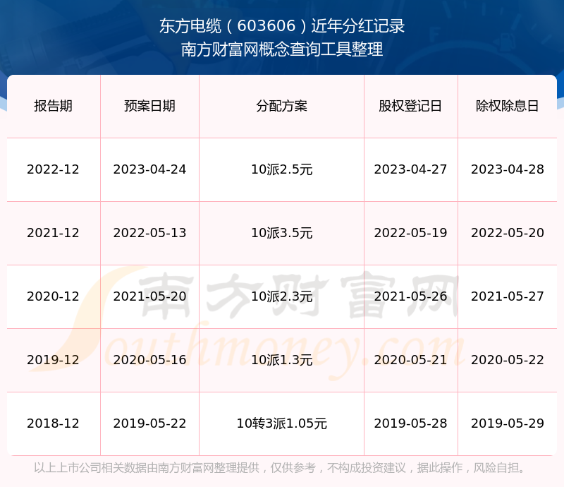 近年東方電纜分紅派息情況如下表所示: