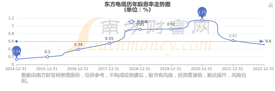 東方電纜歷年股息率走勢如下圖:
