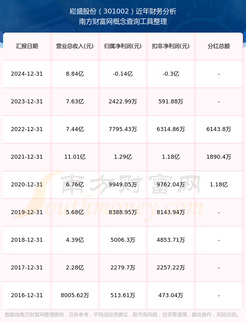 崧盛股份歷年分紅派息情況如下表所示: