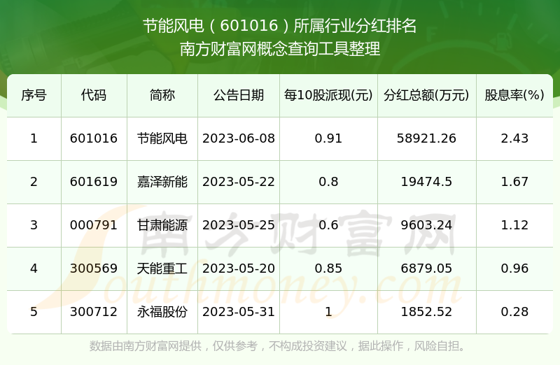 二、節(jié)能風(fēng)電601016行業(yè)分紅排名