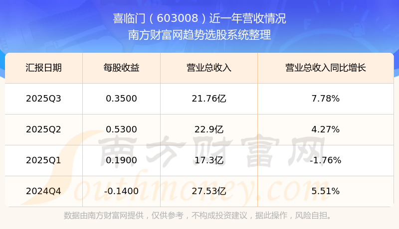 喜臨門發(fā)布2025年第三季度財(cái)報(bào)。實(shí)現(xiàn)總營(yíng)收21.76億元,同比增長(zhǎng)7.78%;扣非凈利潤(rùn)同比增長(zhǎng)-6.16%至1.34億元。