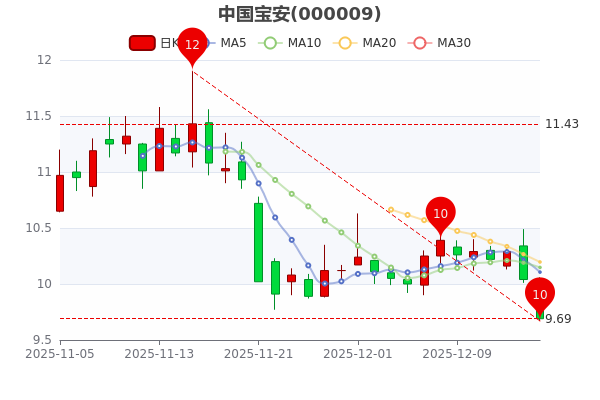 中國(guó)寶安(000009)跌3.49%,報(bào)9.700元,成交額2.38億元,換手率0.94%,振幅跌3.39%。