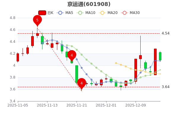 截止12月16日收盤京運通(601908)跌4.44%,報4.090元/股,3日內(nèi)股價上漲3.42%,換手率6.52%,成交額6.48億元。
