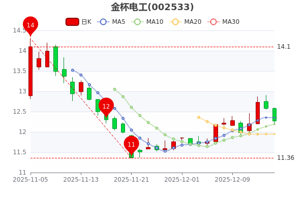 12月16日消息,金杯電工今年來上漲19.8%,截至15時收盤,該股報(bào)12.270元,跌2.46%,換手率2.65%。
