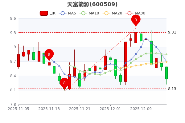12月16日收盤消息,天富能源最新報(bào)價(jià)8.330元,3日內(nèi)股價(jià)下跌3.72%,市盈率為46.15。