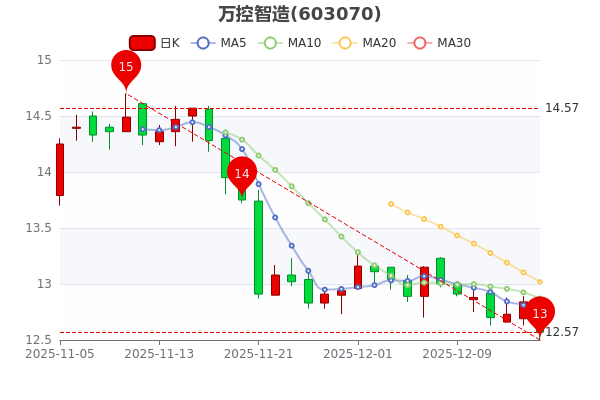 12月16日消息,萬控智造資金凈流出-306.67萬元,超大單資金凈流入-10.05萬元,最新報(bào)12.570元,換手率0.59%,成交總金額2961.71萬元。