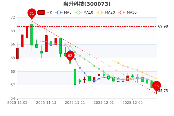 截至15點,當升科技(300073)目前跌1.22%,股價報55.750元,成交1164.97萬手,成交金額6.48億元,換手率2.3%。