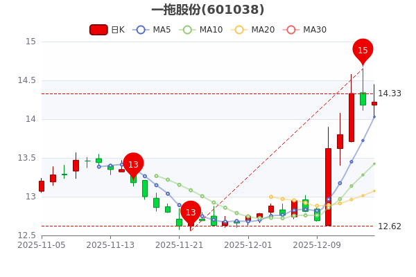 當(dāng)前市值159.78億。12月16日消息,一拖股份開盤報(bào)14.18元,截至15點(diǎn)收盤,該股漲0.28%報(bào)14.220元。