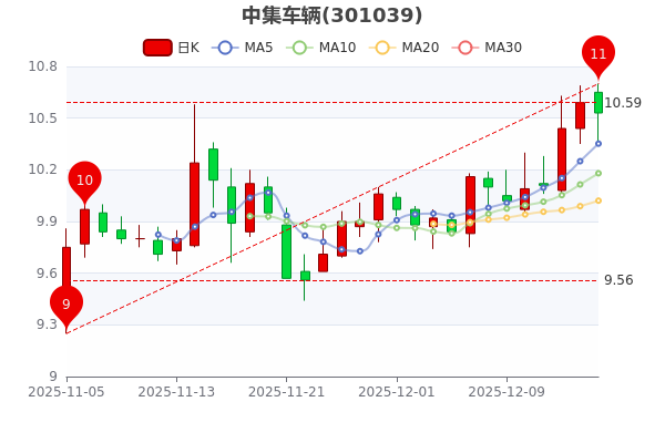 12月16日收盤消息,中集車輛跌0.57%,最新報10.530元,成交金額1.44億元,換手率0.95%,振幅跌0.57%。