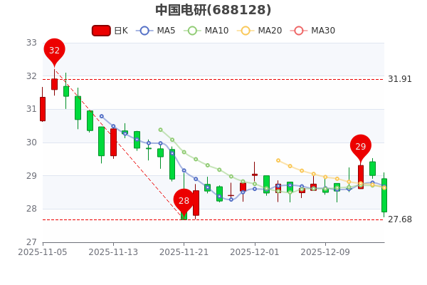 12月16日收盤消息,中國電研截至15點(diǎn),該股報(bào)27.910元,跌4.1%,7日內(nèi)股價(jià)下跌2.54%,總市值為112.9億元。
