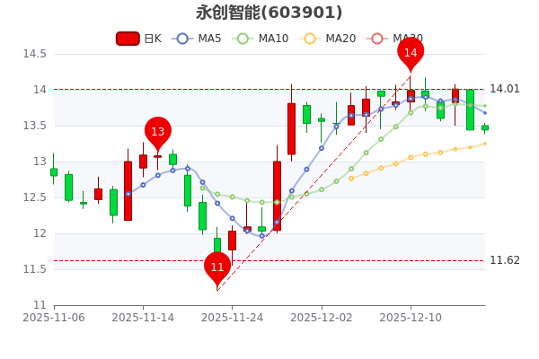 12月17日開盤消息,永創(chuàng)智能最新報(bào)價(jià)13.540元,3日內(nèi)股價(jià)下跌3.35%,市盈率為428.48。