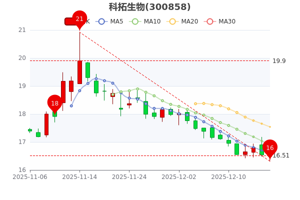 12月17日科拓生物早盤消息,7日內(nèi)股價(jià)下跌5.08%,今年來漲幅上漲13.06%,最新報(bào)16.400元,跌0.18%,市值為43.21億元。