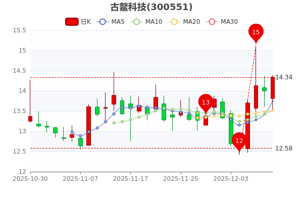 12月17日上午收盤消息,古鰲科技最新報14.340元,漲2.43%。成交量1591.29萬手,總市值為48.77億元。