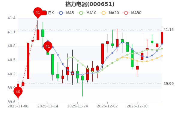 12月17日收盤消息,格力電器5日內(nèi)股價上漲1.78%,今年來漲幅下跌-10.58%,最新報41.100元,成交額17.4億元。