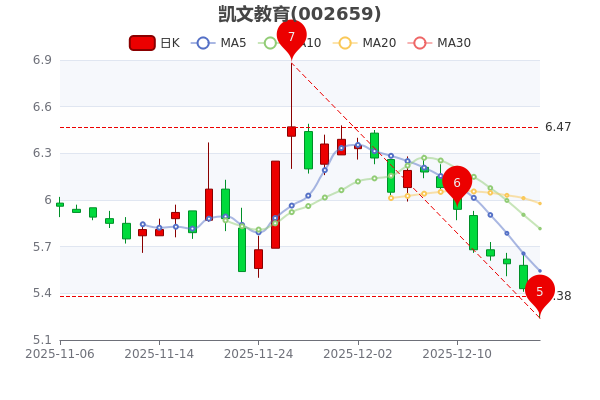 12月17日消息,凱文教育3日內(nèi)股價下跌3.9%,最新報5.380元,跌0.92%,成交額1.02億元。