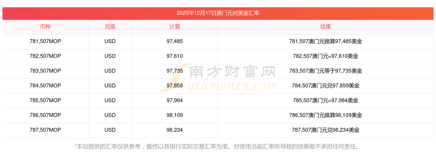 2025年12月17日匯率行情:40澳門元對美金匯率多少