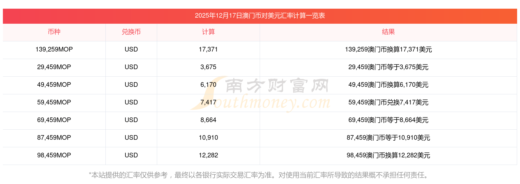 2025年12月17日匯率行情:21澳門幣對美元匯率多少