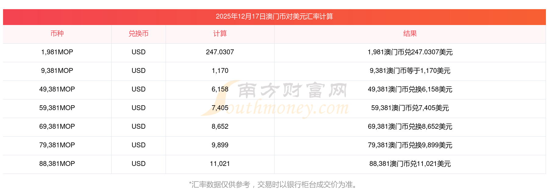 2025年12月17日匯率行情:30澳門(mén)幣對(duì)美元匯率多少