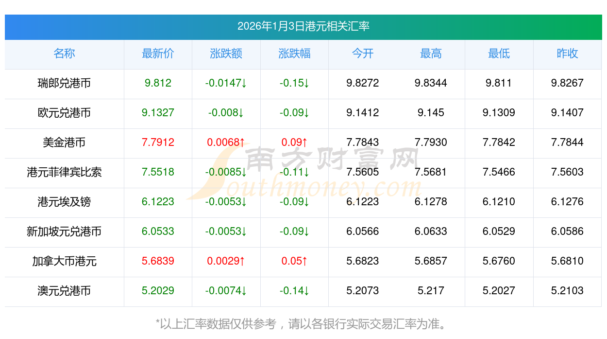 現(xiàn)在港元與日幣兌入匯率多少?(2026/1/3)
