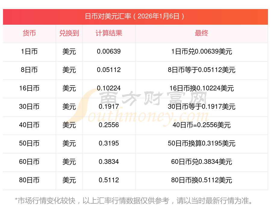 現(xiàn)在5870日元與美元的互換匯率是多少?1月6日