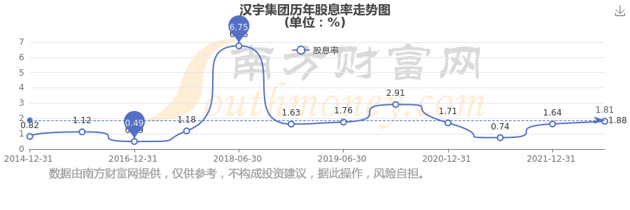 近年漢宇集團(tuán)年度股息率走勢(shì)如下圖: