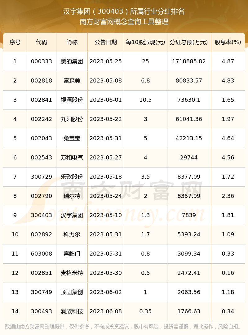 二、漢宇集團(tuán)300403行業(yè)分紅排名