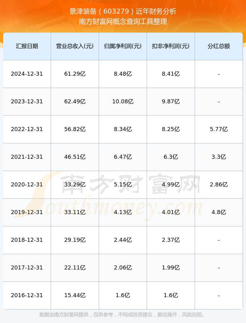 近年景津裝備分紅派息情況如下表所示: