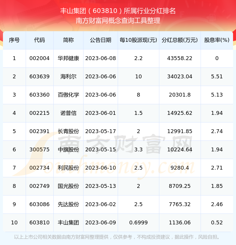 二、豐山集團(tuán)603810行業(yè)分紅排名