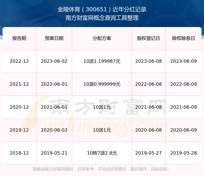 一、金陵體育(300651)股票分紅記錄