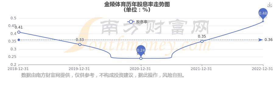近年金陵體育年度股息率走勢(shì)如下圖: