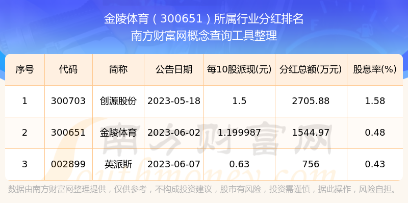 二、金陵體育300651行業(yè)分紅排名