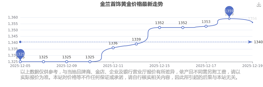 今日(2025年12月21日)金蘭首飾黃金價格為1356.0元/克。