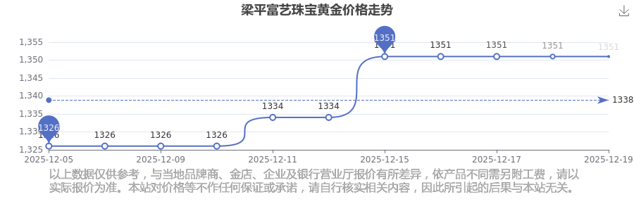 梁平富藝珠寶黃金價格每克多少錢,請問今日一克黃金的零售價格是多少?今日梁平富藝珠寶黃金價格查詢,2025年12月21日梁平富藝珠寶黃金價格:1351.0元/克。