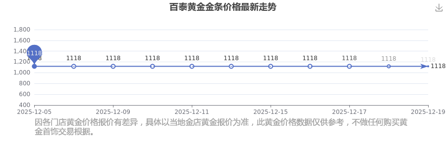 今日百泰黃金金條價(jià)格最新為1118.0元/克。