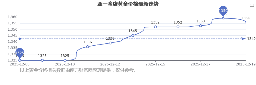 2025年12月21日亞一金店黃金價(jià)格最新為1356.0元/克。