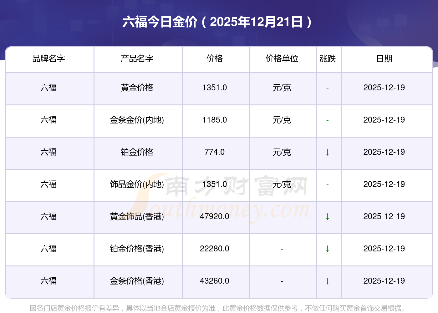 2025年12月21日六福黃金今日價格多少一克_六福金價實時行情來了,一起來看看吧!