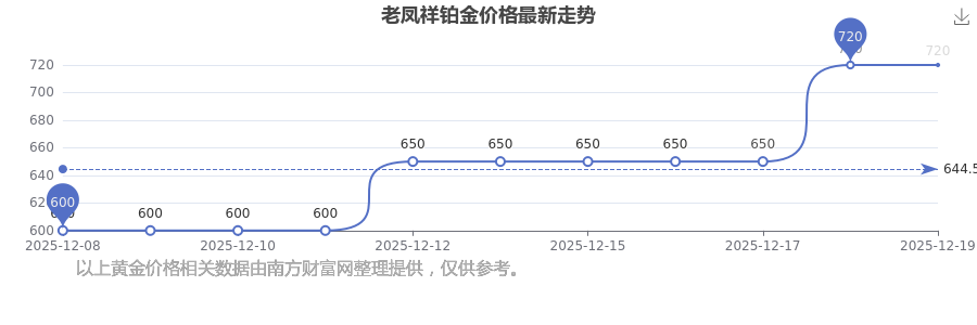 目前老鳳祥 鉑金價(jià)格的價(jià)格,今日最新為720.0元/克。