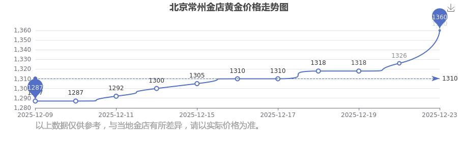 因各門店黃金價格報價有差異,具體以當(dāng)?shù)亟鸬挈S金報價為準(zhǔn),此黃金價格數(shù)據(jù)僅供參考,不做任何購買黃金首飾交易根據(jù)。