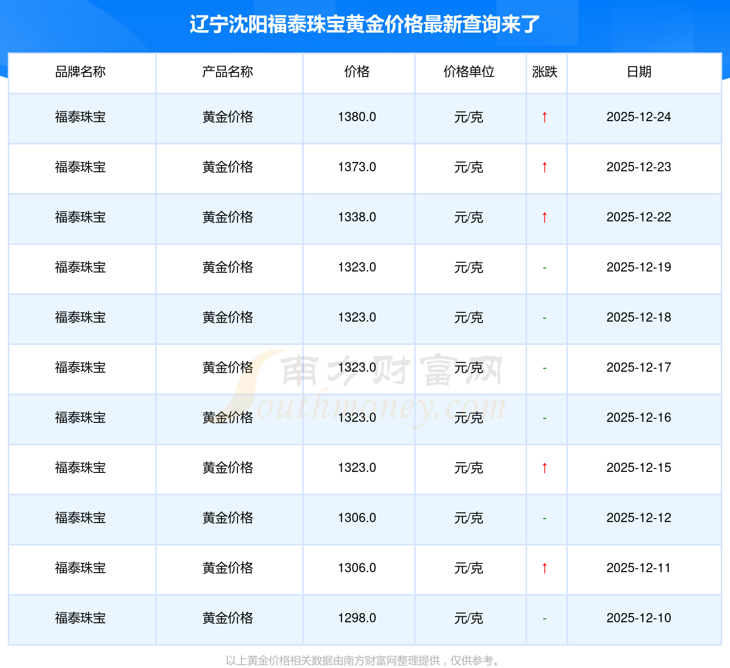 今日遼寧沈陽(yáng)福泰珠寶黃金價(jià)格為1380.0元/克。