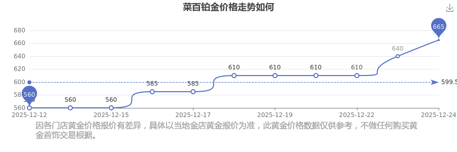目前菜百 鉑金價(jià)格的價(jià)格,今日最新為665.0元/克。