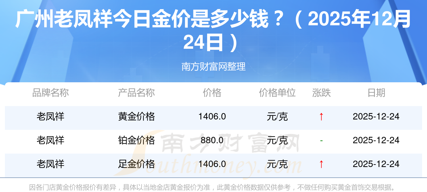 2025年12月24日廣州老鳳祥黃金一克的市場行情價是多少?黃金價格1410.0元/克,鉑金價格932.0元/克,黃金價格1406.0元/克,鉑金價格880.0元/克,黃金價格1408.0元/克,鉑金價格932.0元/克,鉑金價格(香港)27300.0,黃金價格1413.0元/克,鉑金價格720.0元/克,黃金價格1408.0元/克,鉑金價格932.0元/克。