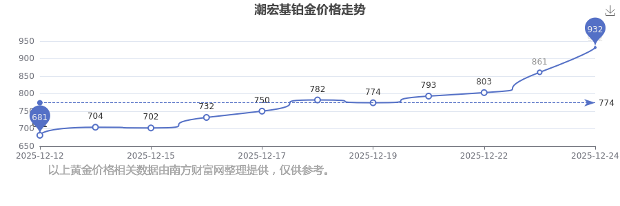 潮宏基今日 鉑金價(jià)格的最新市場行情價(jià)為932.0元/克。